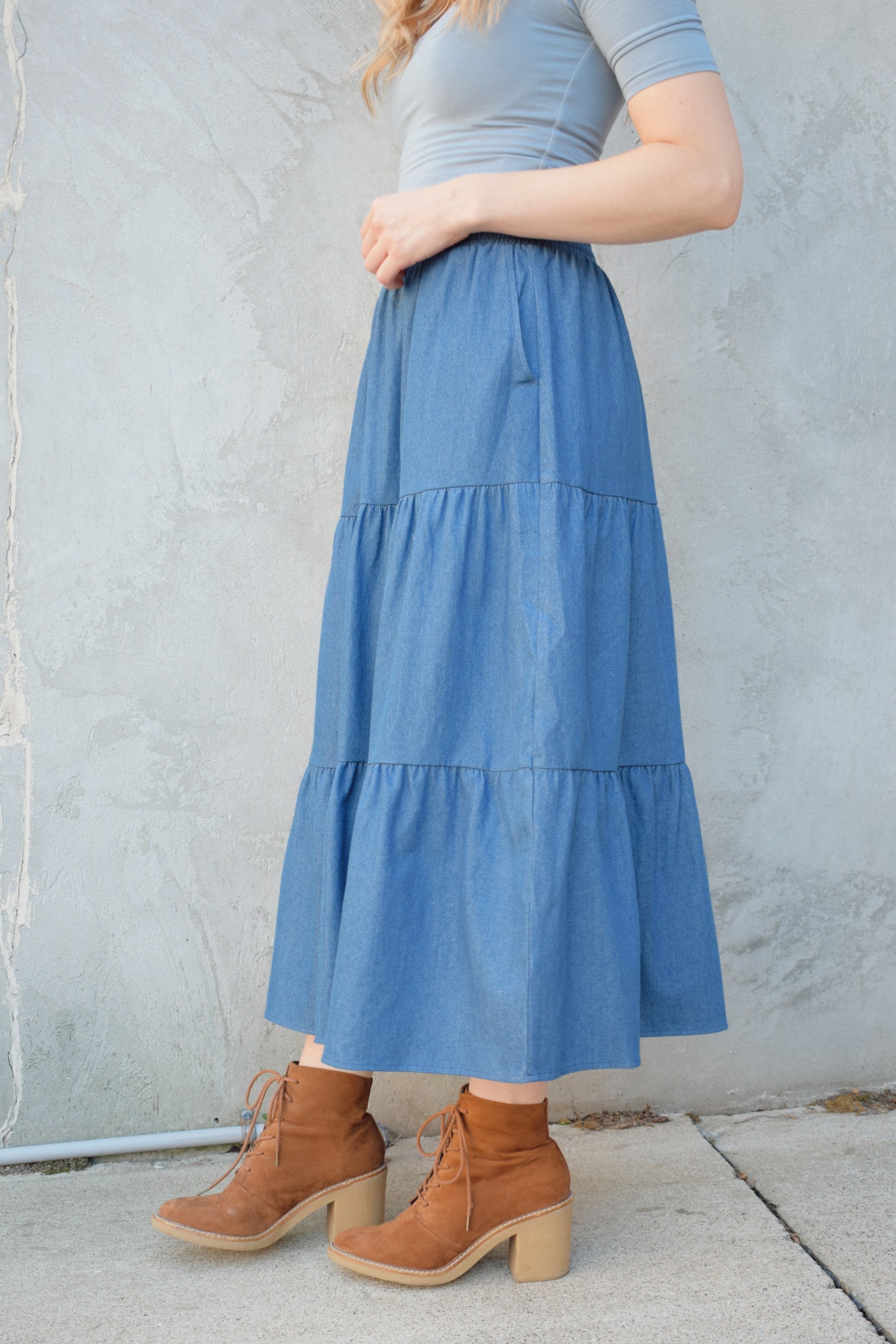 tiered denim skirt