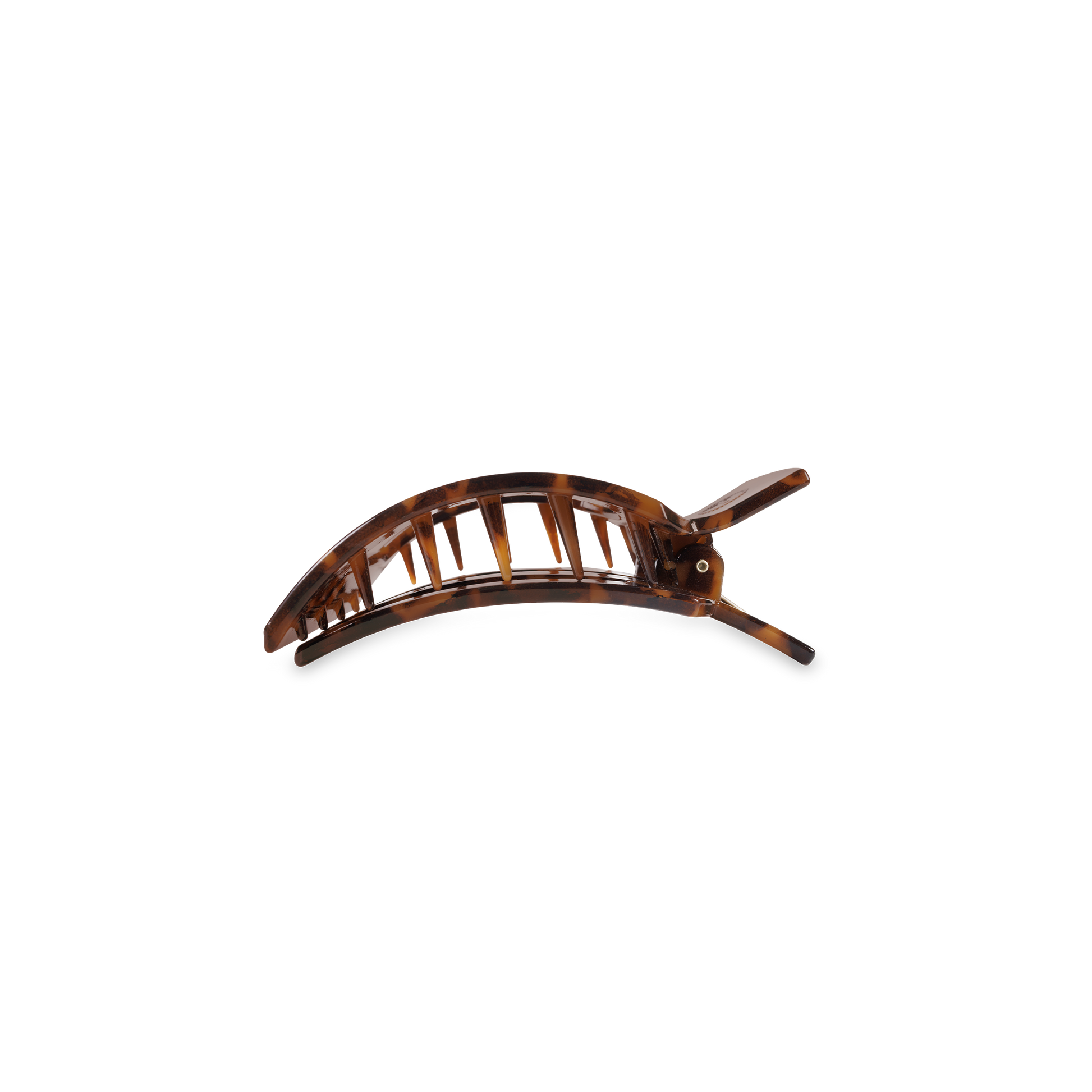 The small size is suitable for thin to medium hair types, whether worn up or half-down. The small size is 3.25 inches long.